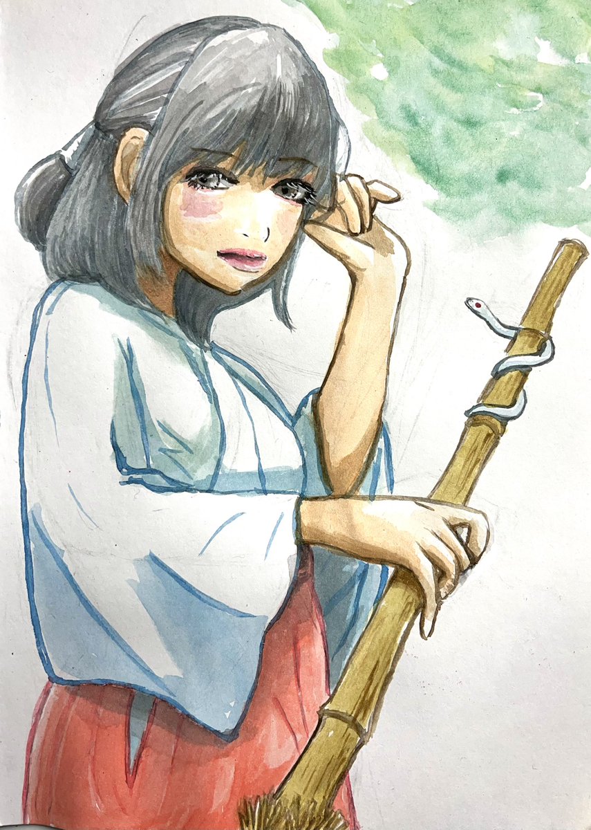 1 9 白蛇と巫女シリーズ デザイン大幅アップデート #イラスト #水彩 23/03/29 00:46