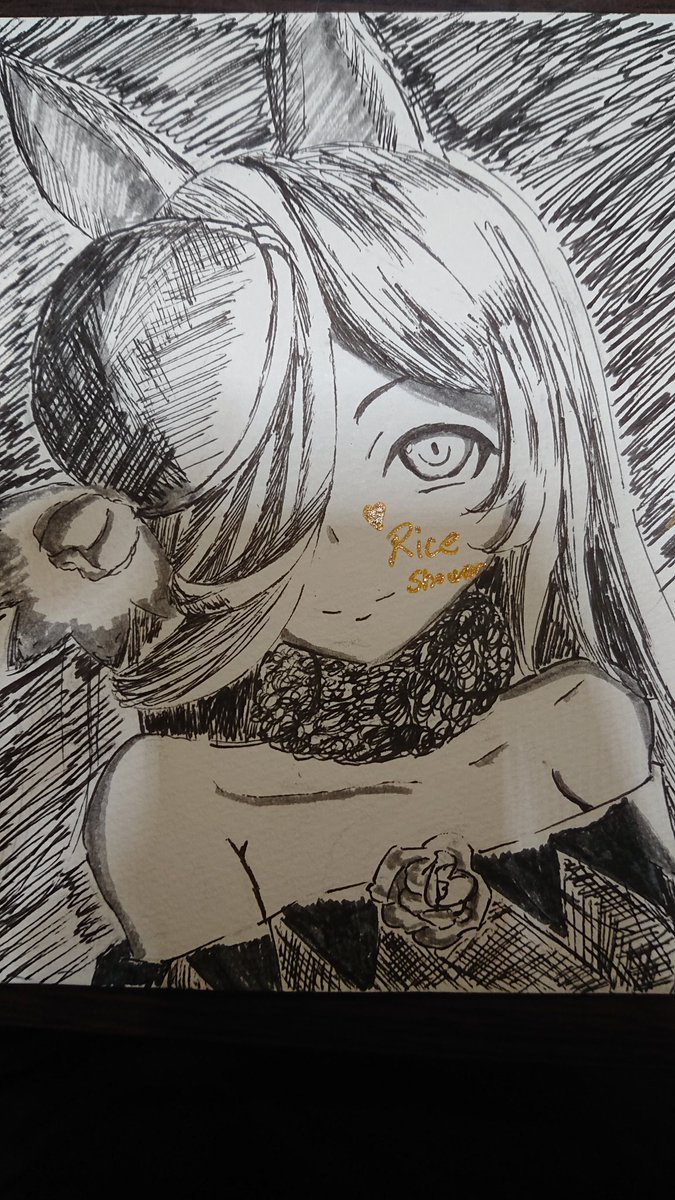 0 6 夜中のお絵描きライスシャワー。 あと金色のペンのみで雰囲気つかむ練習。 モデルはゴルシ。 #ウマ娘 #ペン画 #アナログイラスト #ライスシャワー #ゴールドシップ 22/10/17 23:51