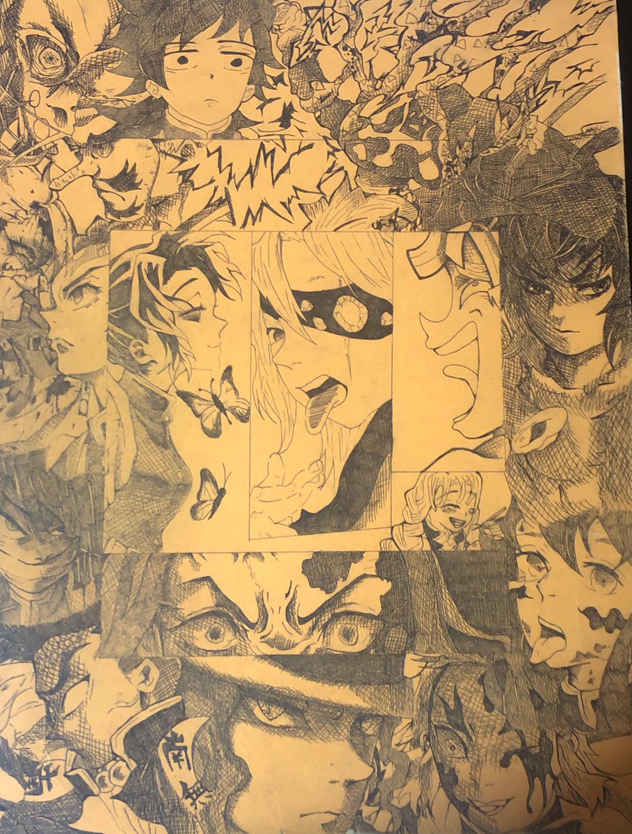0 13 #鬼滅の刃イラスト #ボールペン画 ファイルの裏に描いた模写たち 配置ミスりまくってるね(´-ω-`) 20/08/04 00:17