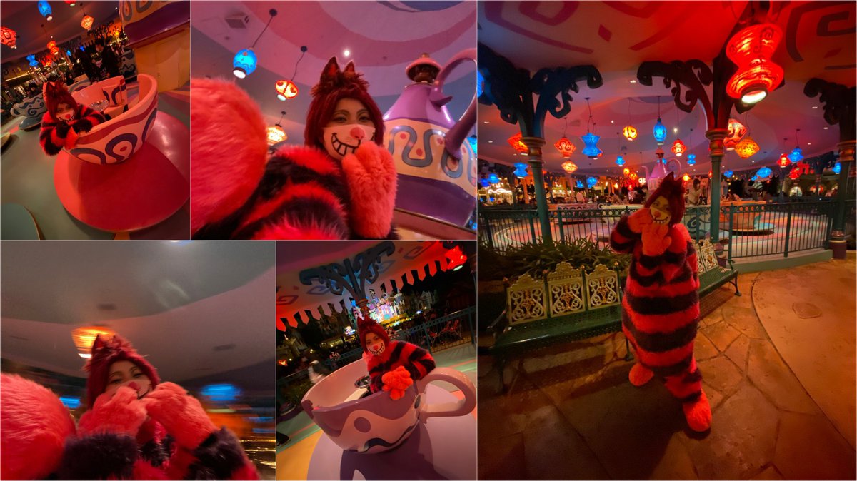 チェシャ猫の仮装で アリスのティーパーティーも しっかり乗ってきました! #ディズニー仮装 #ディズニー仮装2022 #Dハロ仮装2022