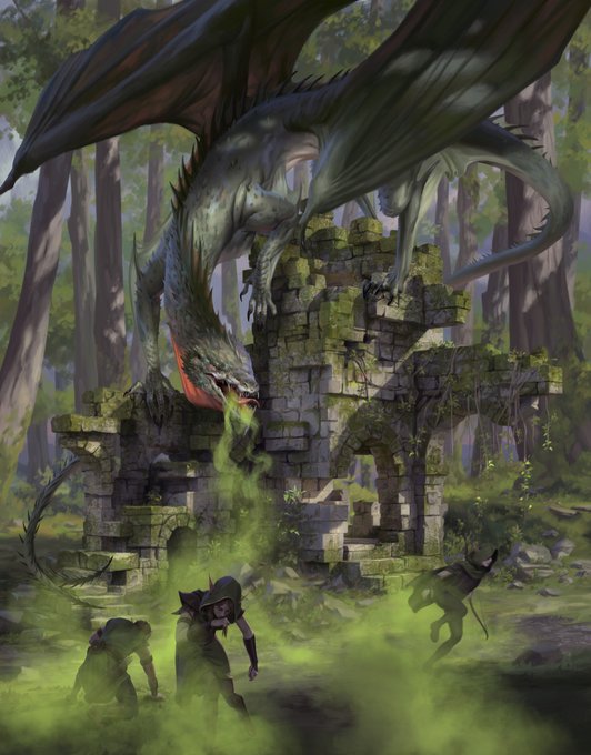 Painted this green dragon for Fizban's Treasury of Dragons. They wanted something a little different for the look of the green dragon and suggested something a little more crocodilian. #dnd #fizbanstreasuryofdragons