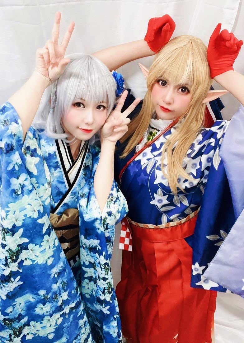 楽しいです♪ ノエルちゃんと一緒に着物を着た かわいい❤️ #不知火フレア #白銀ノエル #hololive #コスプレイヤーと繋がりたい