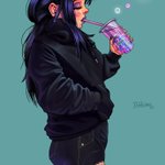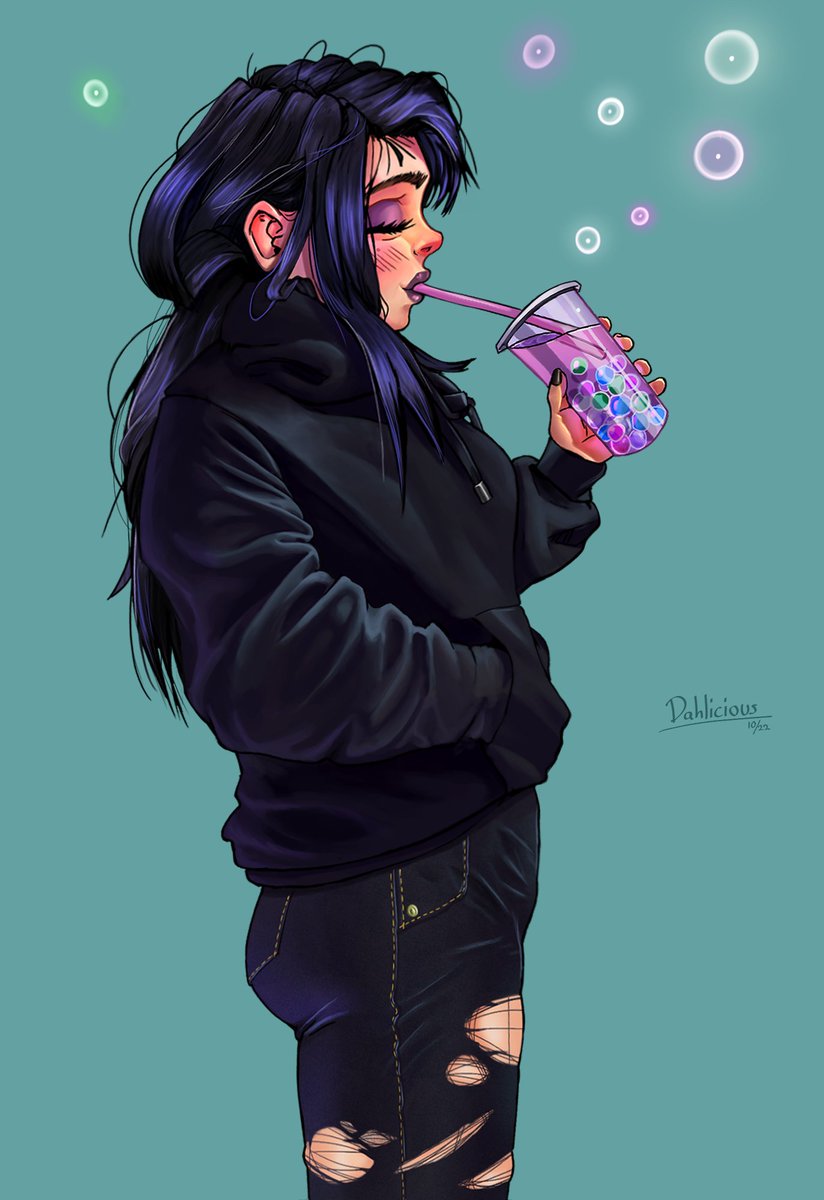 Even someone as edgy as Elinor can like cute things. ALSO Elinor is visiting the real world for a bit back with the long hair and everything :) #oc #digitalart