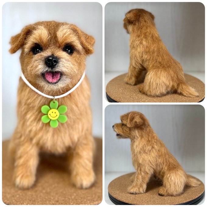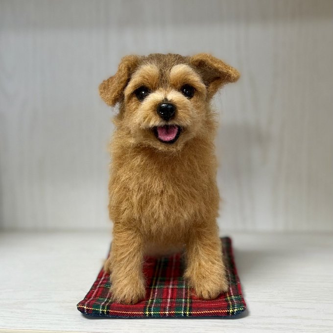 ノーフォークさん🥰真ん中の子OKもらいました💕飼い主さまが私の作風を丸っと受け入れてくれる方で本当にありがたいです。神お客さま😍残り1ワンさんも頑張ります! #羊毛フェルト #犬