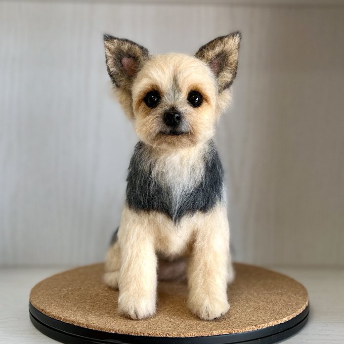 0 33 ヨーキー×チワワさん🥰 植毛終わり、飼い主さまに見てもらいます☺️ #羊毛フェルト #犬のいる暮らし 22/09/29 11:58