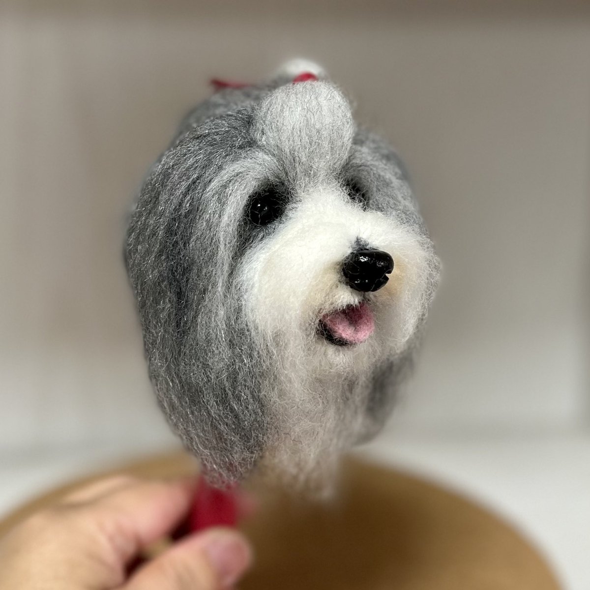 ビアデッドコリーさん🥰 とりあえずお顔が完成。 #ビアデッドコリー #BeardedCollie #羊毛フェルト