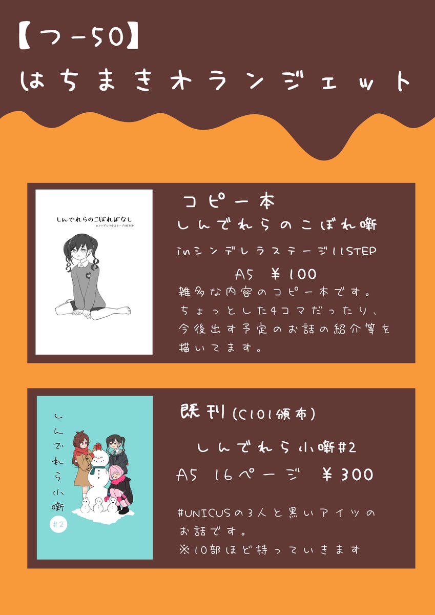 【シンステ11 おしながき】 今回のシンステはC101の既刊とコピー本を持っていきます!あと名刺も少し持っていきます。 コピー本はバイブスだけで描き上げてるのでそこそこ雑多な内容になってます。 【つー50 はちまきオランジェット】にてお待ちしております!何卒…! #cin_stage #シンステ
