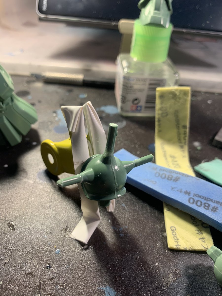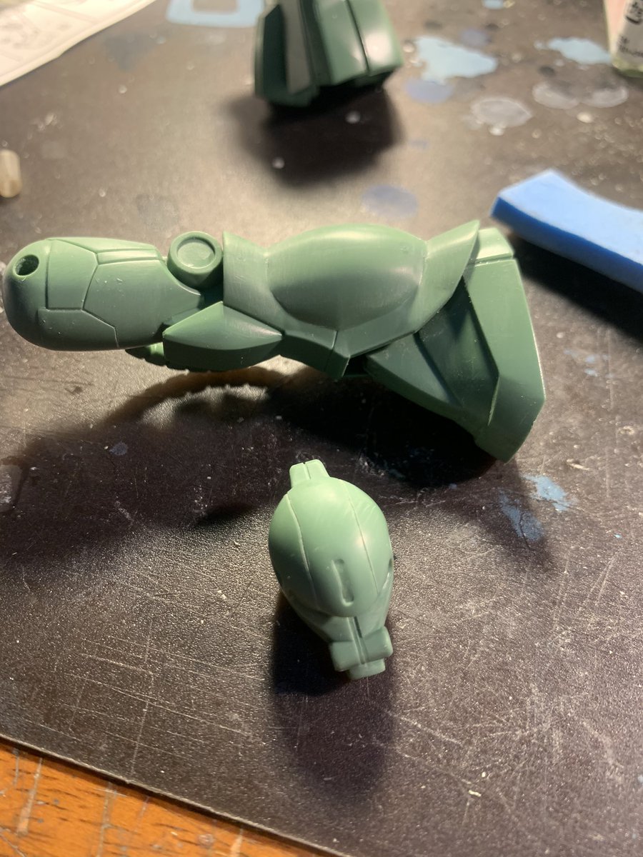 今日1日かけて うっすいモールドの 彫り直しをして 右脚部と 頭部の合わせ目消し完了‼️ まだまだ先は長い💧 #かなふぇす #ガンプラ好きと繋がりたい #ガンプラの画像貼るとRTされると聞いて #ガンプラ男子