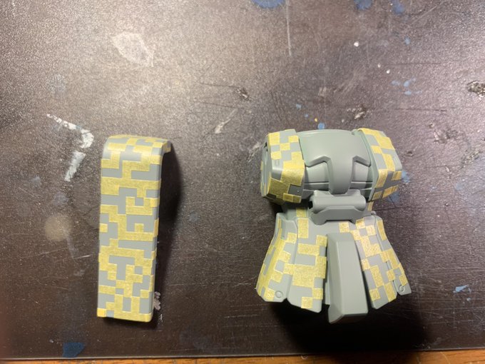 ようやく、、、 胴体とシールドの マスキング完了😫😫 残すは腕部のみ😤😤 月末までには完成しそう〜💧 良かった、、、 #ガンプラの画像を貼るとRTされると聞いて #ガンプラ好きと繋がりたい #かなふぇす #ガンプラ男子