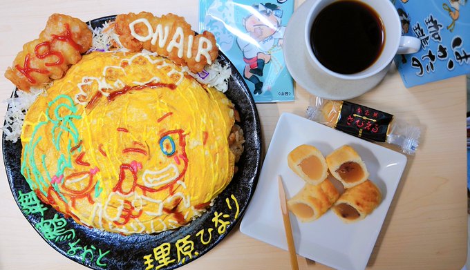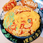 今日は富士葵ちゃんのお誕生日ー!! 葵ちゃんおめでとうございまーす(*≧▽≦*)/🎉🎂✨ 葵ちゃん&キクノジョーさんオムレツにマルタイ棒ラーメンで作った焼きラーメンと春巻きつけましたー!! 今日21時からのオンラインライブ楽しみです(*>w<*)b! #富士葵 #葵の絵 #富士葵誕生日2022