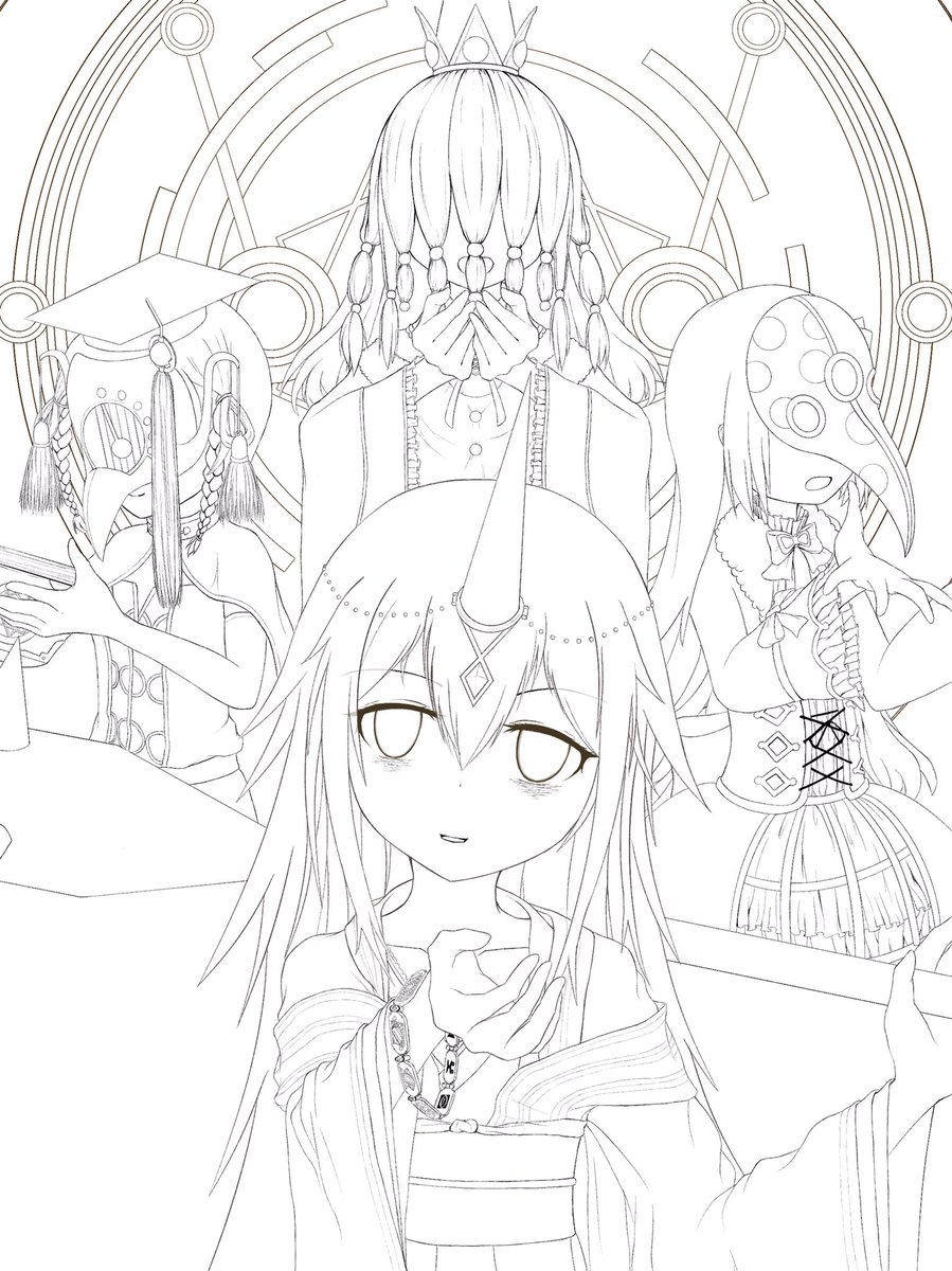 #皆さん線画と塗った後を見せてください 人数多いと映えるね!