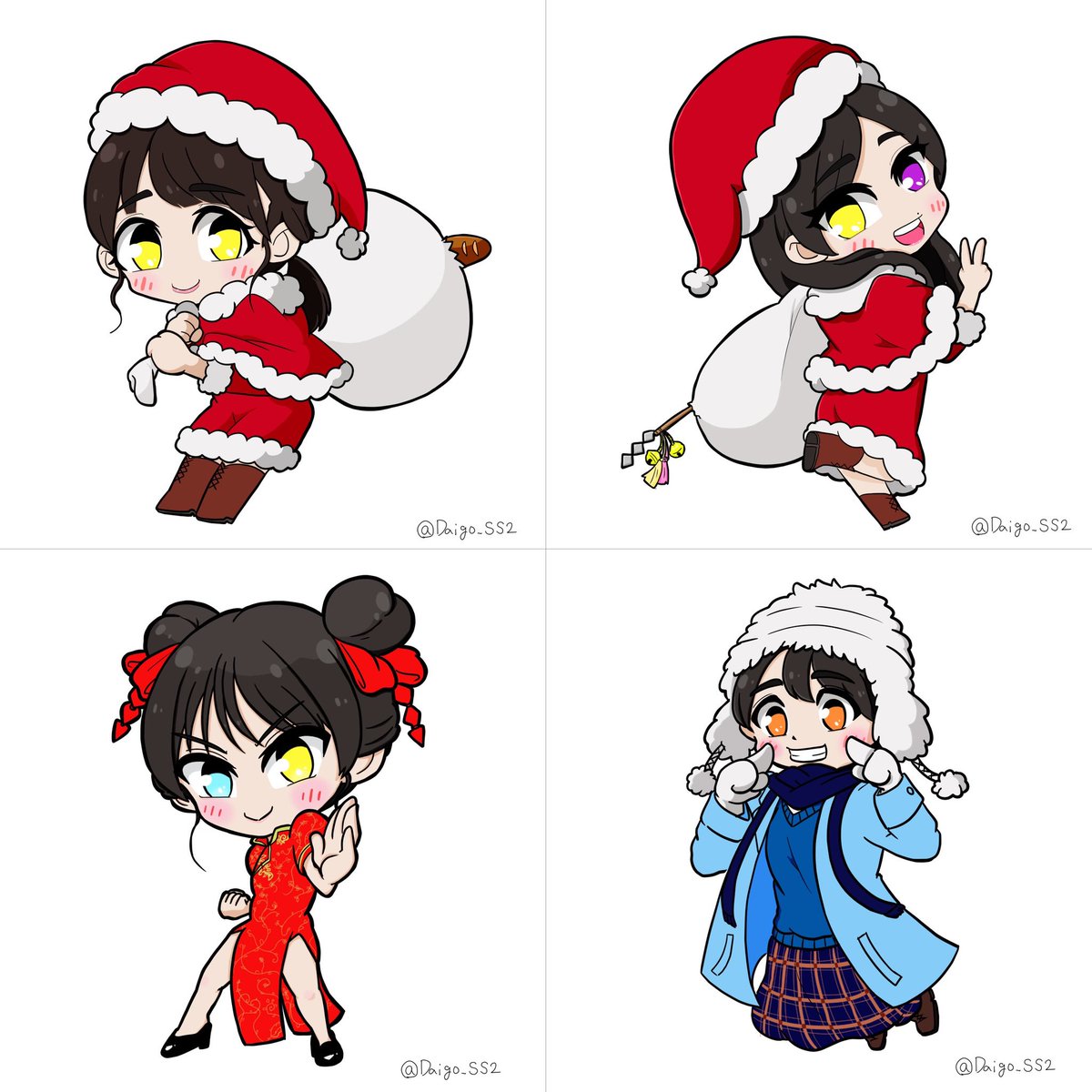 ひなくり(12/17)でシール配る予定です! 新規2枚と過去絵2枚の4種です。 ※現物にサインは入れません。 ・みーぱんサンタ ・なっちょサンタ ・チャイナ🍣 ・にぱーなにぶちゃん