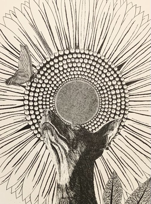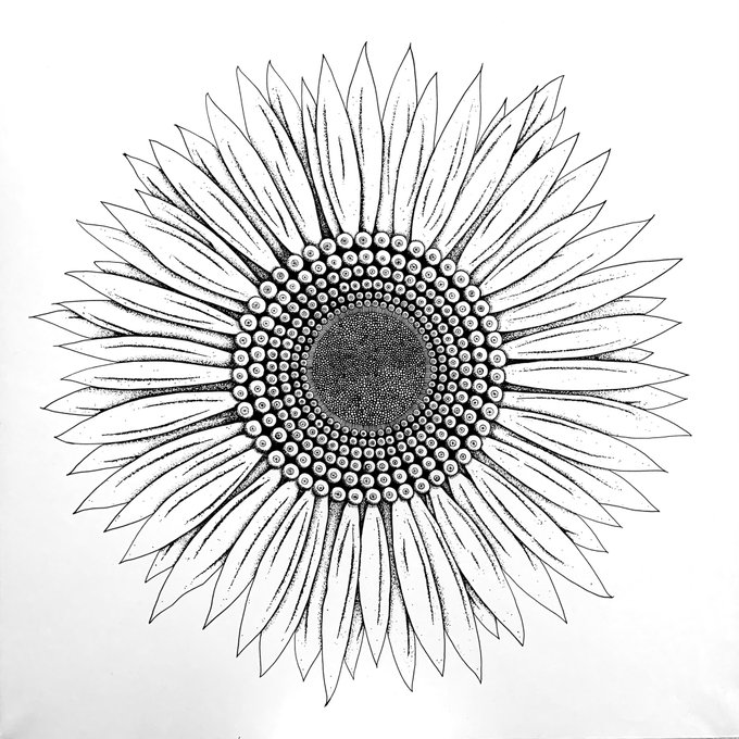 「ひまわり」 #ペン画 #ひまわり #花 #奇抜 #細密画 #イラスト #illustration #三億アカウントの中から私を発掘してください #私を布教して twitter.com/i/web/status/1…