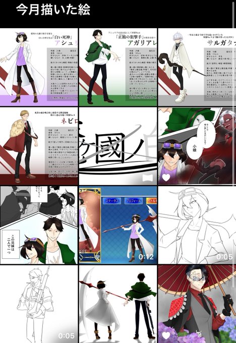 #今月描いた絵を晒そう 今月はうちよそとか、他所様の子とか、創作(という名の課題)でしたね。 動画作ってる時が一番キツかった(動画1本につき10枚前後描いてる(数秒しかない超短い動画×3))