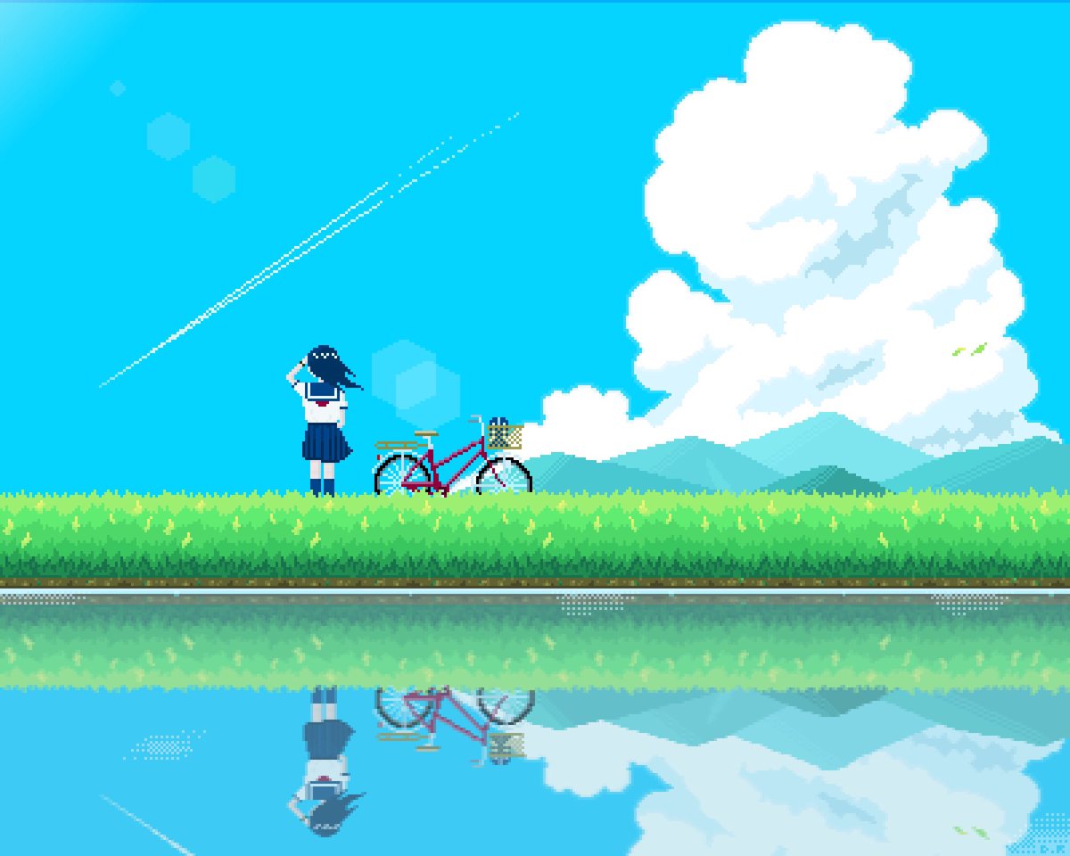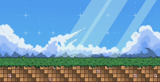 おかか容疑者さん(@daidaimyou)からアートトレインのチケット頂きました!こういうの初めてなので嬉しい限りです🔥 ビッグウェーブに乗ります🌊 ドット絵初めて1ヶ月ないくらいの思い出の背景絵で失礼します。普段はゲーム用のモンスターや背景、UIなど作ってます! #pixelart #ドット絵 twitter.com/daidaimyou/s…