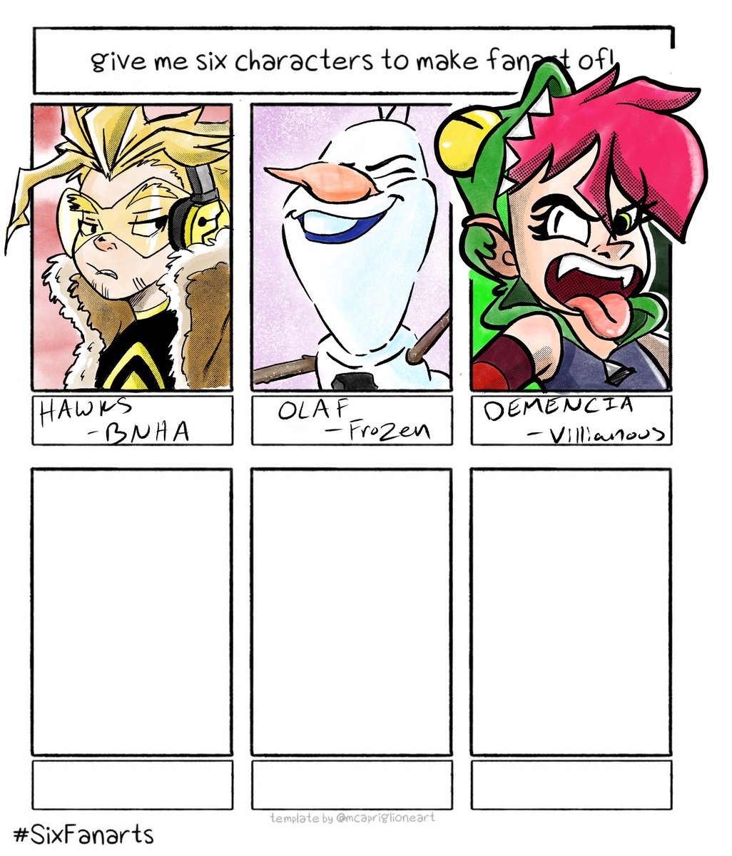 Haven't drawn anime in a long time and this art challenge is going to show it! Anyways here's my first set 😊 #sixfanartschallenge #sixfanarts #hawksbnha #hawks #olaf #olaffrozen #demenciavillainous #demência #demencia #fanart #anime