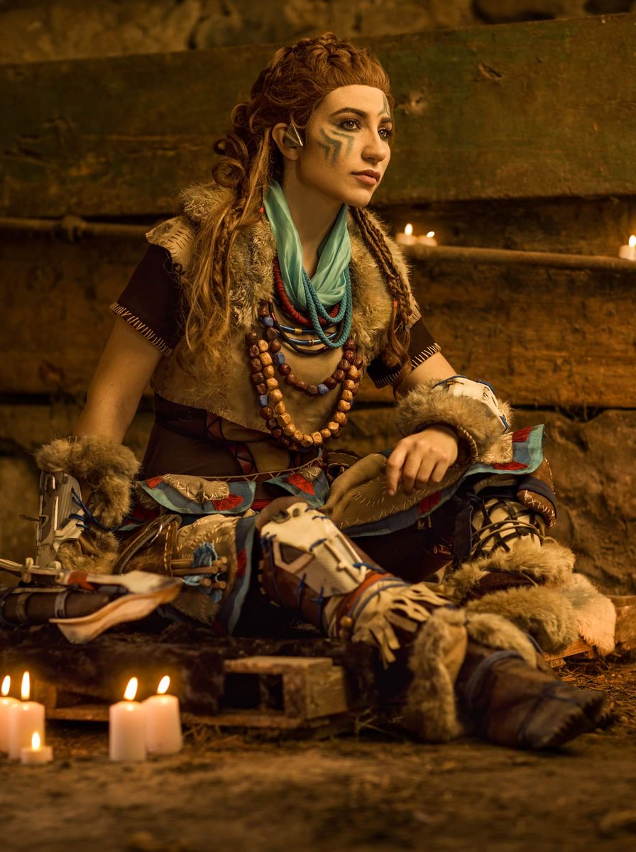 This is Aloy while thinking to sweet potato fries! Cosplay by me @DaisyCosplay , amazing picture by @azproductioncos ! Wait.. do sweet potato fries exist in HZD? @Guerrilla serious important vital question 🥔 #cosplay #horizonzerodawn