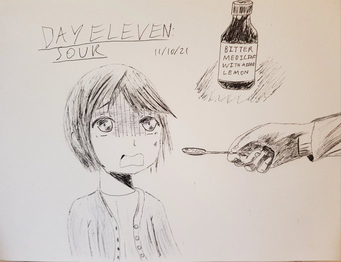 Doctor: here's your medicine Child: 😥😰 #Inktober #inktober2021 #inktoberday11 #sour #Inktober2021Day11 #inktober2021sour #Inktober2021day11sour #inkart #anime #illustration #drawing #AnimeArt