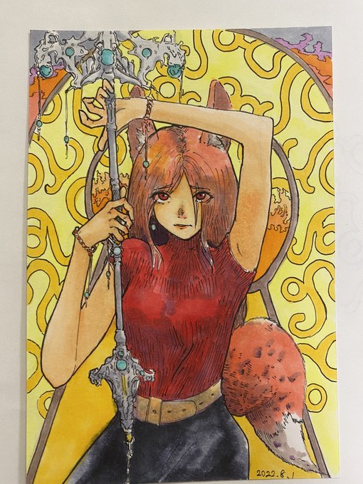 0 6 #絵 #イラスト ミュシャみたいに描きたかった狐さん 22/08/02 18:23