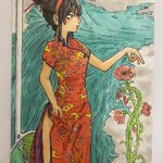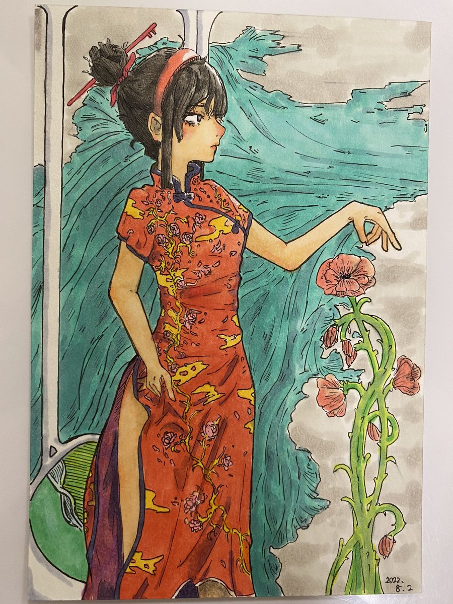 0 3 #絵 #イラスト 3日目 チャイナ服を苦心しながら描いた絵 上手な人ってどうやって皺を塗ってるのでしょう?? 22/08/03 19:17