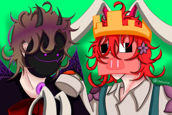 It's the Year of the Rabbit! Aaaand he's asking his Ender Dragon bestie to try it on 🐰 #rivalsduo #dreamfanart #technofanart