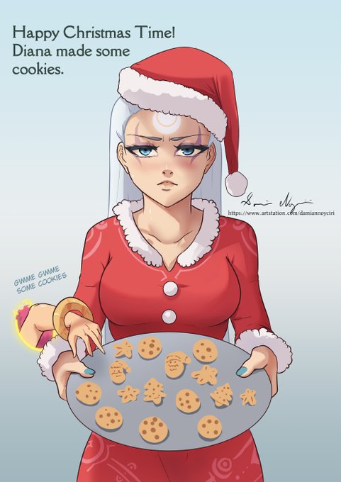 🌕"Diana made Cookies"🍪 It's Christmas Time on Mount Targon and Diana worked real hard to make these cookies. #LeagueOfLegends #LeagueOfLegendsFanArt #artistsontwitter #digitalart