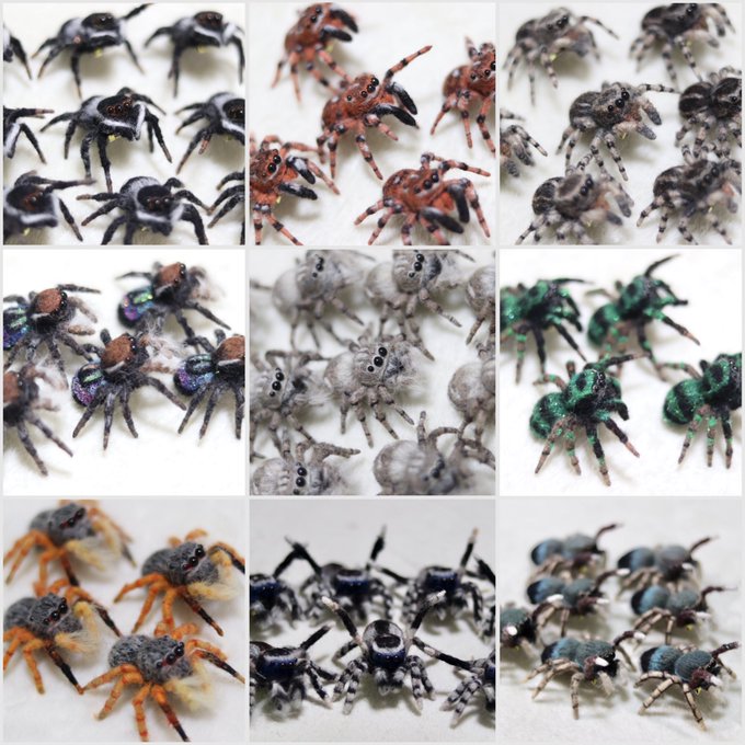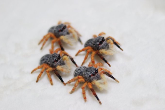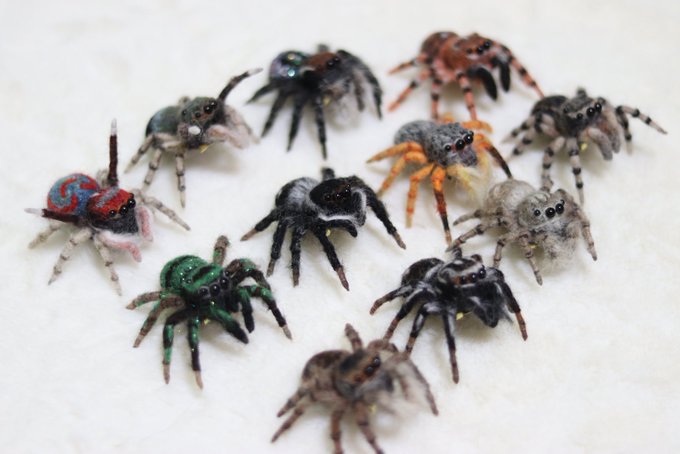 #ファンになってくれる人RT 色んな蜘蛛(主にハエトリグモ)を羊毛で作っております。