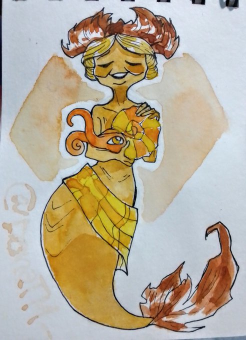 Día 31:Berenjena. Esto sería todo por el Mermay de este año my bois, espero que les haya gustado, ¡desempolvé las acuarelas para esta ocasión! #mermay #mermay2020