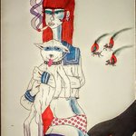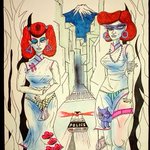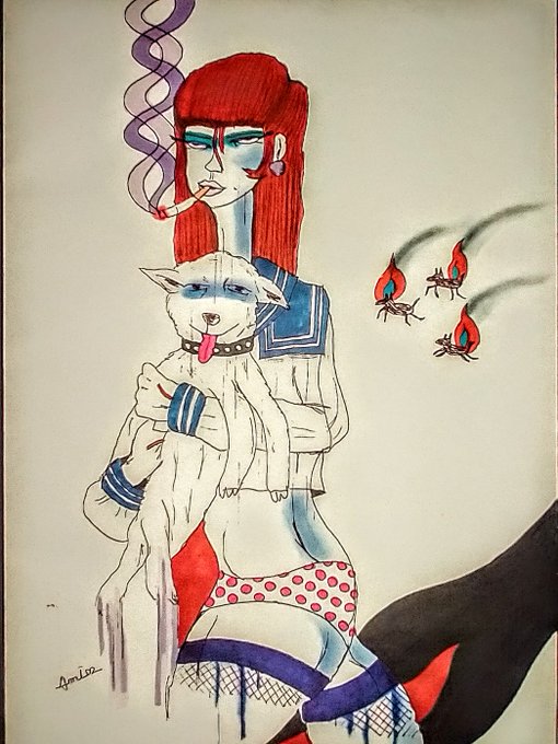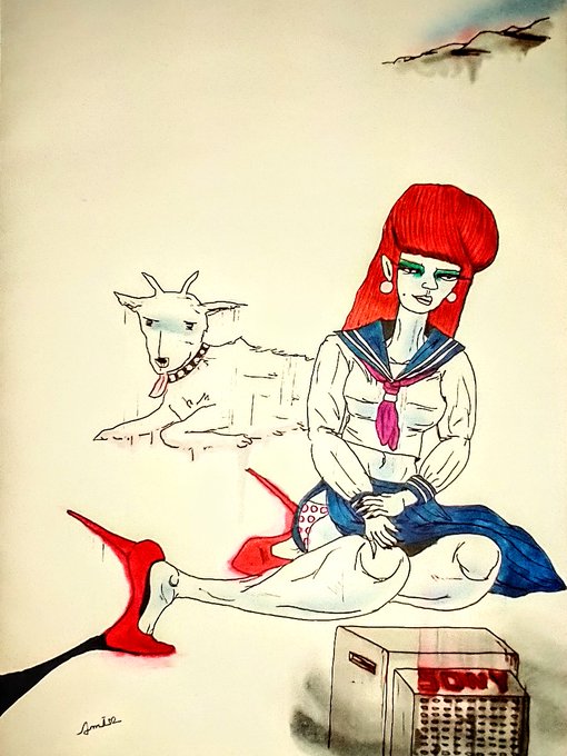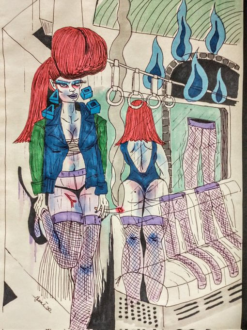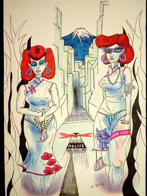 題「基地の女たち」(B4) 画by ジュテーム・アミ ▼告知▼ 【もうアングラなんて呼ばないで/ジュテーム・アミ×おかだしげひろ 噂の二人展】 2023年5/13(土)〜5/21(日) 高円寺・テラピンステーション 水曜休 月金13時〜19時半、火木土日13時〜20時✆03-3313-6655 #イラスト #イラストレーション