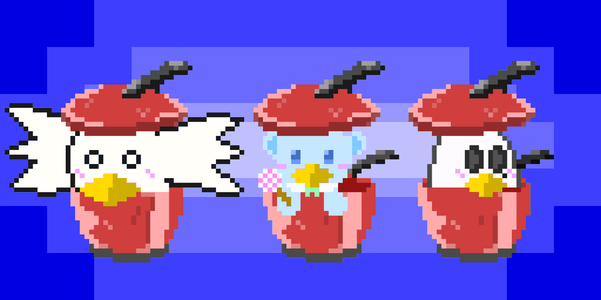 #ぽへアート #ぜんこぱあーと #ひゃき絵 #ドット絵 ぽへバードの鍋に入るぜんこぱぐまバード&ひゃきバード