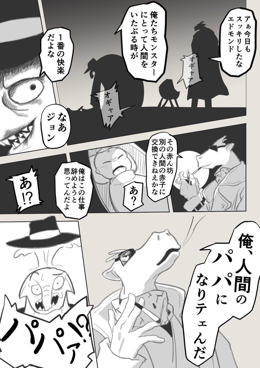 2 12 落書きオチなし短編漫画 『モンスターのおっさんが人間のパパになる』 #漫画が読めるハッシュタグ #創作漫画 22/05/06 20:30
