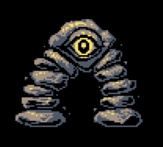 Monster of the week: Rockfiend It's a pile of rocks animated by a powerful wizard. It may lurk in ruins or rove the wilds long after its caster is gone. Beware its Rock Volley spell, which batters the heroes with up to four flying rocks! #MonsterMonday#RPG#PixelArt#ドット絵