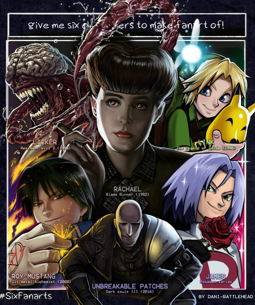 #Sixfanarts 2020 . . . . . . . #residentevil #licker #bladerunner #pokémon #darksouls #thelegendofzeldaocarinaoftime #fullmetalalchemist #younglink #unbreakablepatches Might do a twitter version, who would you suggest owo?