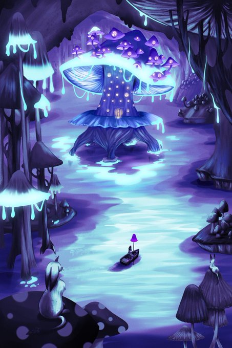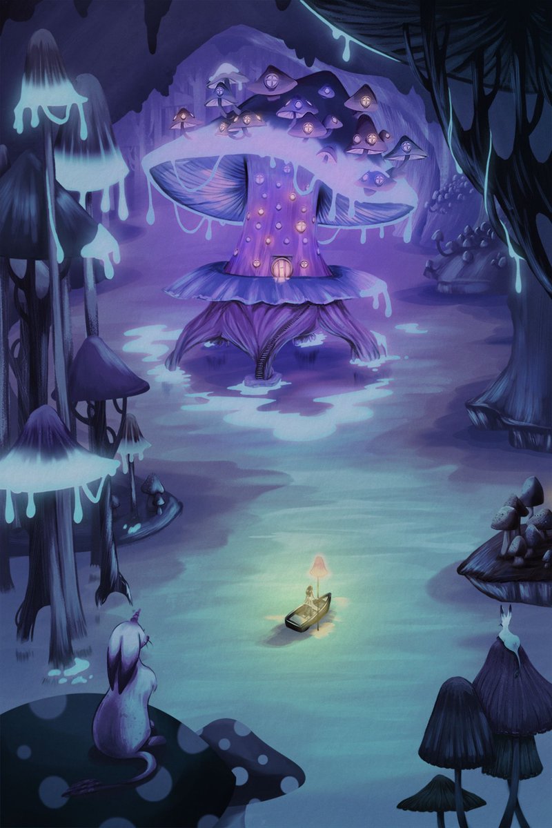 Made some updates to my mushroom cave painting from last year🍄 #illustrationart #Illustrator #illustration #conceptart #art #ArtistOnTwitter #artist #artwork #painting