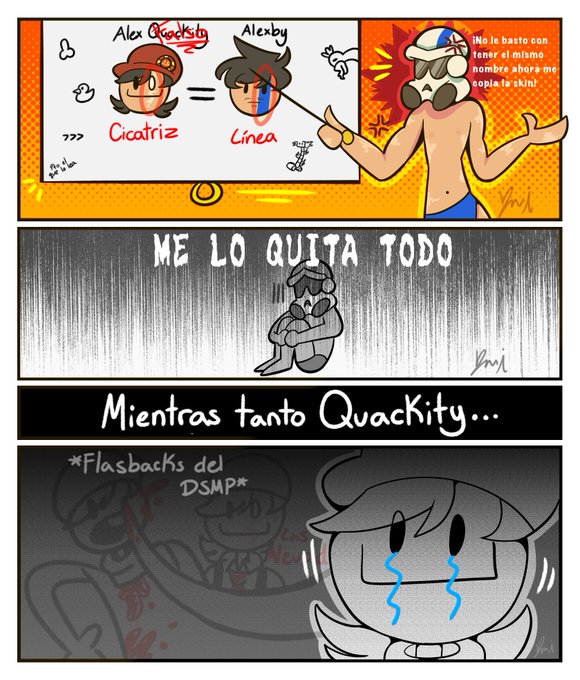 Continuación de este comic feo Alexby cree que la cicatriz de Quackity es porque le quiere copiar su línea azul, pero lo que no sabe es que Quackity sufrió en su vida pasada 😔👊 #Karmalart #Karmaland #Karmaland5 #KarmalandFanart #alexbyfanart #quackityfanart twitter.com/DaniiCopy28/…