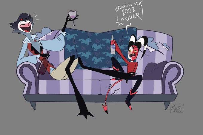 First drawing of the year with a drunk #HBnewyears2023 #HelluvaBoss #HelluvaBossFanart #HelluvaBossStolas twitter.com/kremlin_art/st…