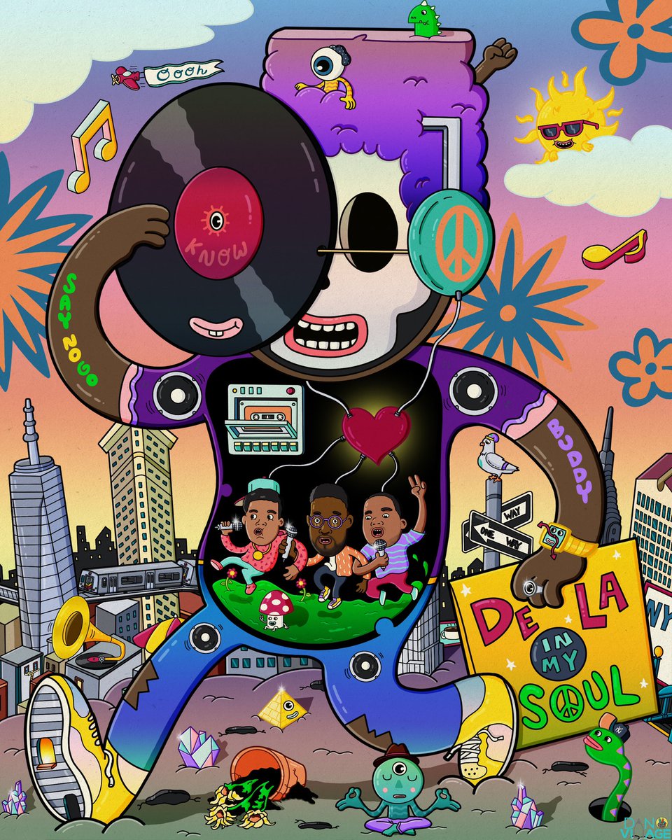Ever since I was a knee-high I’ve been a fan of the head legendary crew known as @WeAreDeLaSoul . I can’t even begin to explain the inspiration the music has brought me in my life. In homage to the days of “rollerskatin’ jams” is my latest print “De La in My Soul”. #illustrator