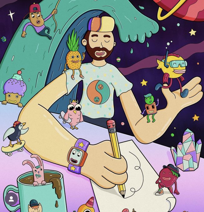 Hi 👋🏻 #PortfolioDay I’m Daniel, a Santa Barbara based illustrator that creates wonderfully wacky and vibrant art filled with positive vibes. Looking to collab with rad rockstar creatives for ultra fun projects. 📧: daniel@danvillage.com 💼: Danvillage.com