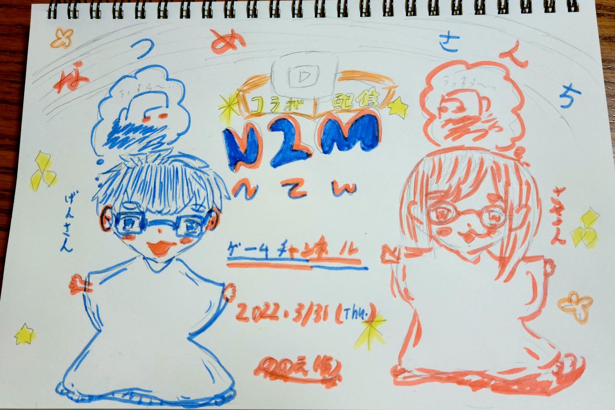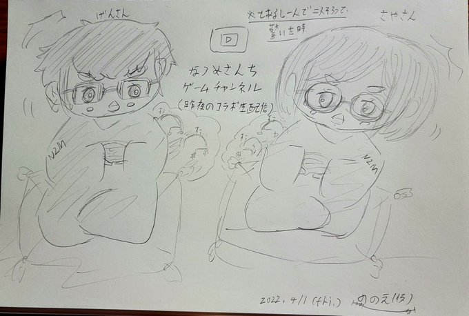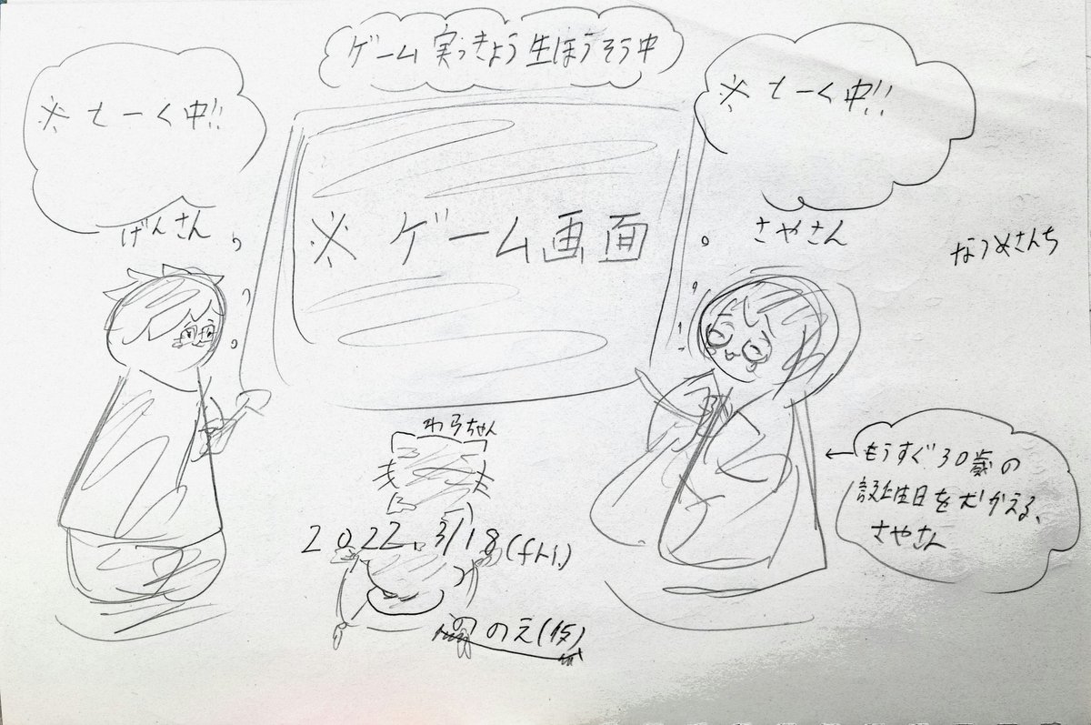 #なつめさんちの美術室 昨夜のコラボゲーム配信(実況) お疲れ様でした!! 最後まで見まして こちらもドキドキしながら 楽しんでおりました P.S. とあるシーンでお二人同時に 驚いた驚かれた所をイメージして ふわっとタッチで 描いてみました(*´ω`*)♪