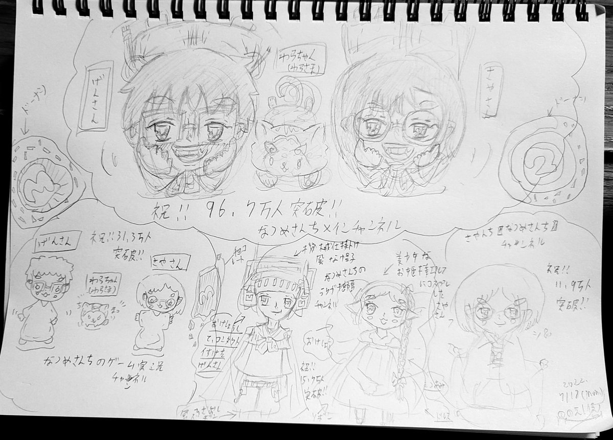 #なつめさんちの美術室 私なりになつめさんちの YouTubeチャンネルお祝いイラスト を夫々イメージして描いてみました (*´ω`*)♪ メインチャンネルもう直ぐで、 90万人突破になりますね!✧︎*。 これからも応援します!! (ひっそりと)(❁ᴗ͈ˬᴗ͈)