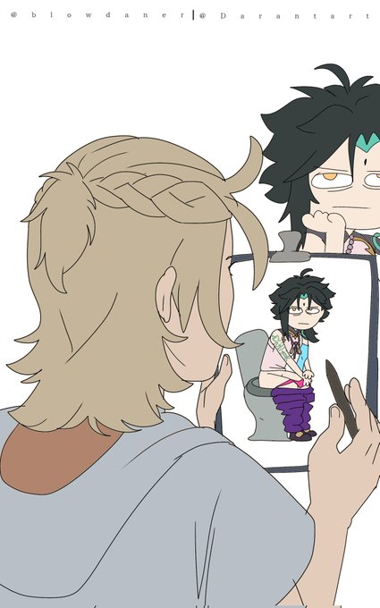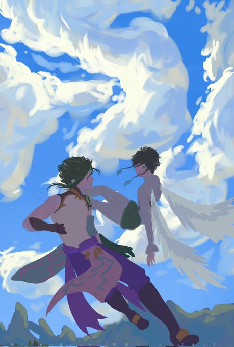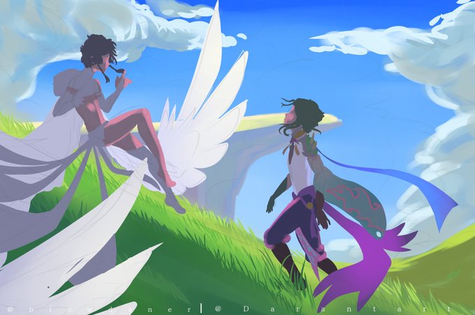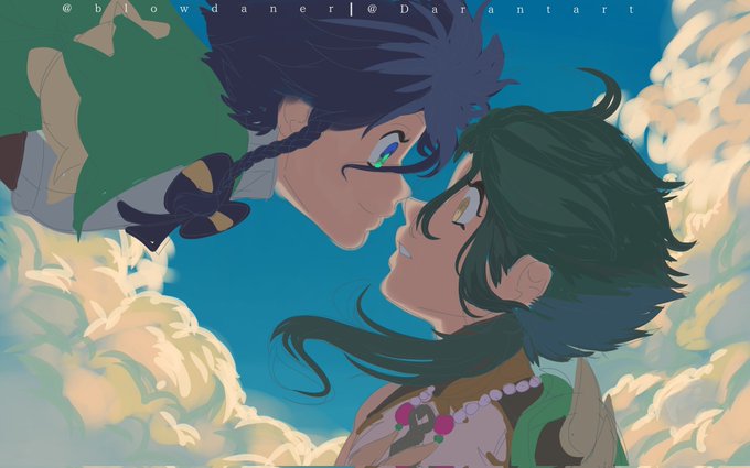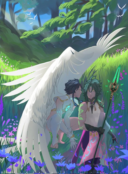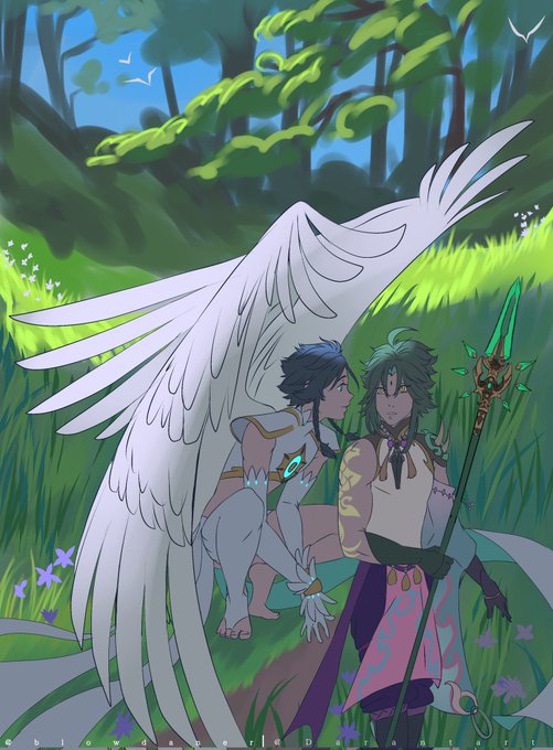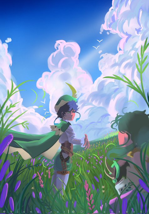 Collab perfeita depois da gente tirar fotos com os dois, a erva subiu a cabeça e pensamos, pq não os dois como jardineiros?? O Venti é meu Xiao é da @Lewitzerr #GenshinImpact #genshinimpactfanart #Xiao #Venti #xiaoven #原神
