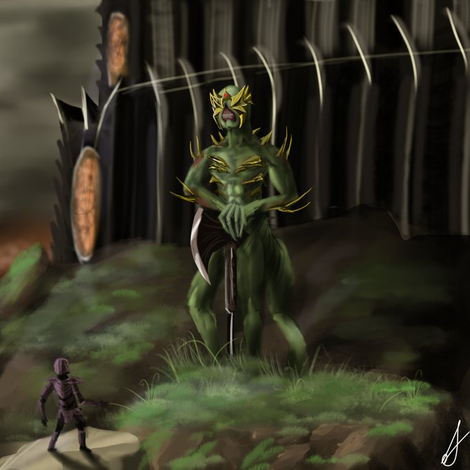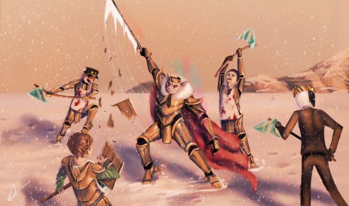Submission for #koinko15k ! Congrats on 15K! "The cave paintings depict a entity descending down onto a battlefield. The warriors below seem to worship this entity..." #philzafanart #dreamsmp #dreamsmpfanart