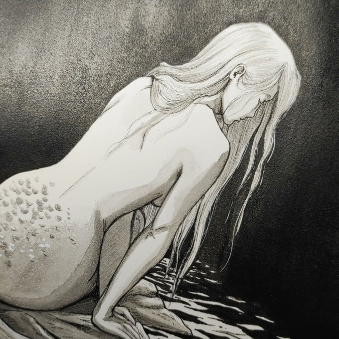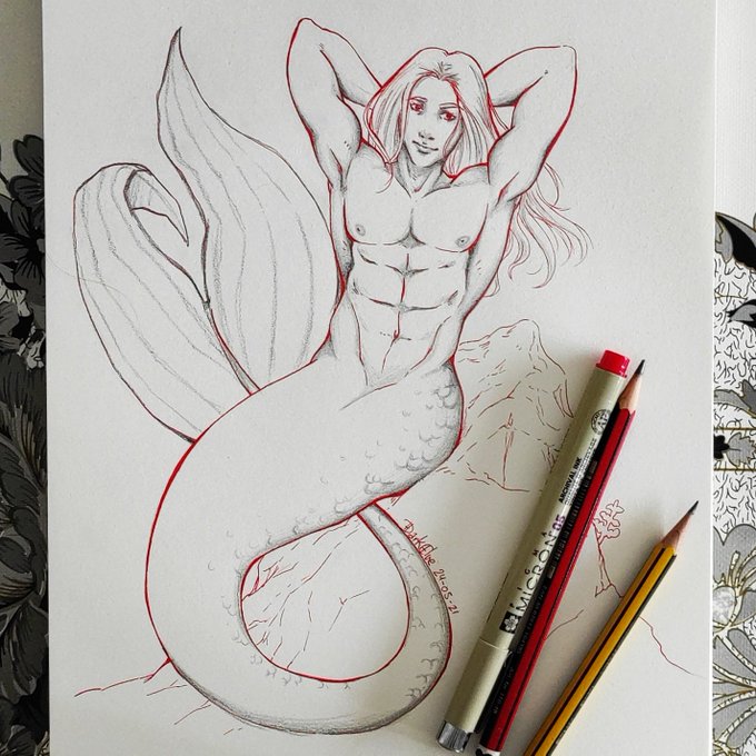 Hoy he empezado otro dibujito de sirenas... Y esta vez con un tritón sexy 😏🤣 El jueves a las 18.30 le doy el color! #mermay #mermay22 #mermay2022 #wip #wipart #watercolour #darkelvestyle