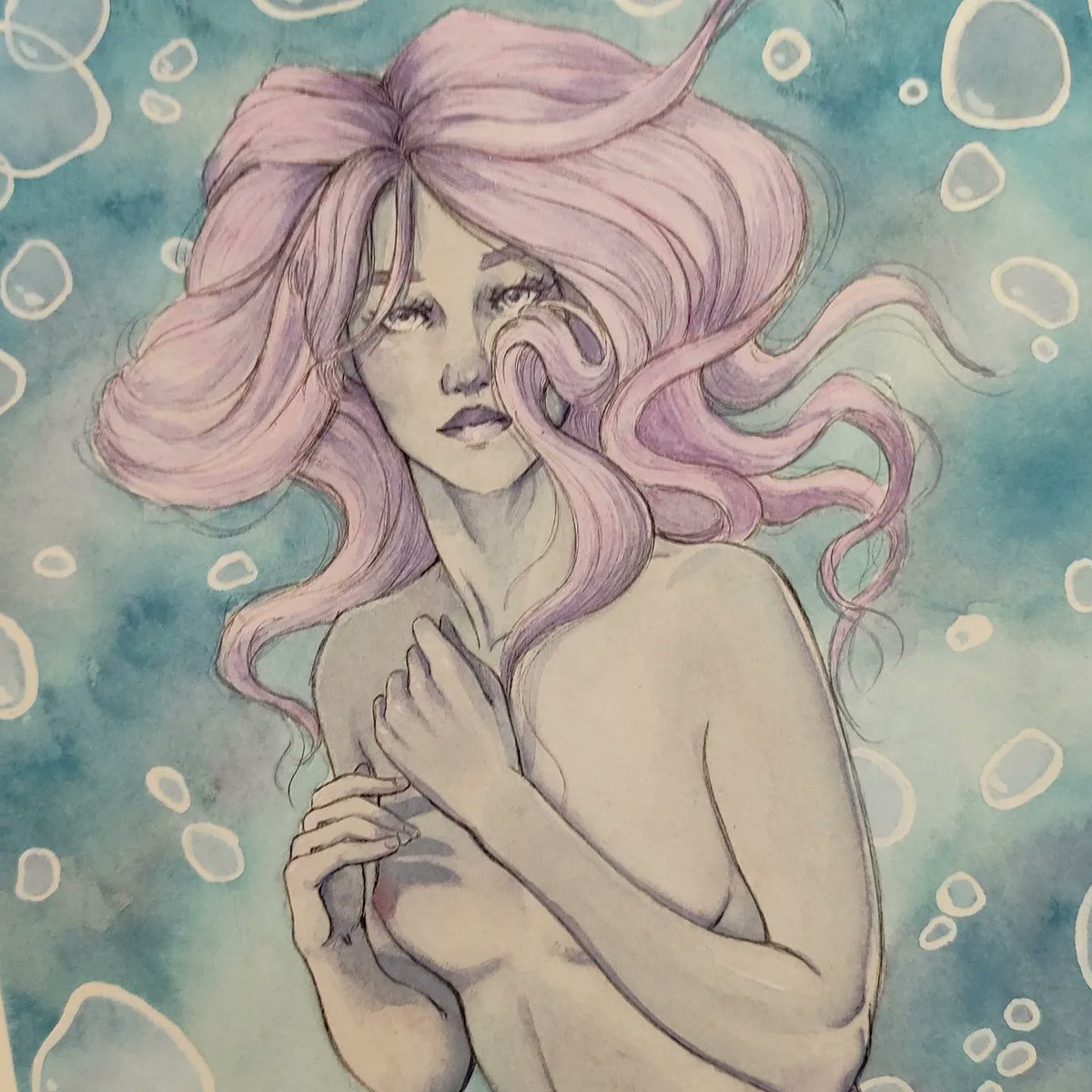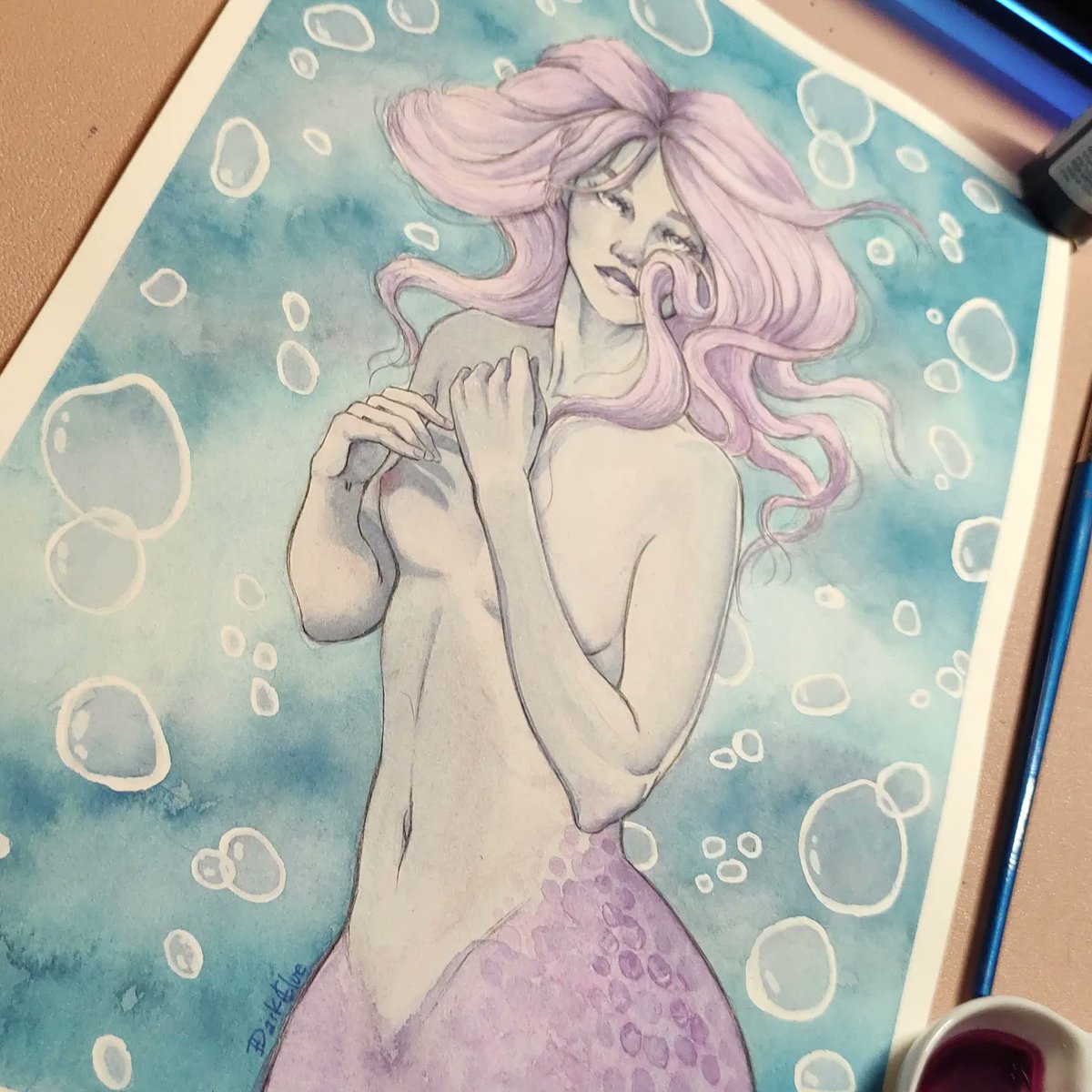 Otra sirenita! Muchas a todos por pasaros por el Stream!! Nos vemos el jueves a las 18.30 ❤️ #mermay22 #mermay #mermaid #fantasy #watercolour #darkelvestyle