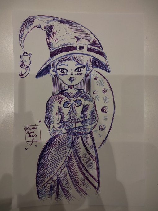 Hoy en mis 15 min libres del curro hice este sketch de brujita y les deje un dibujito a los compis 🌸 #art #inktober2022 #InkDrawing