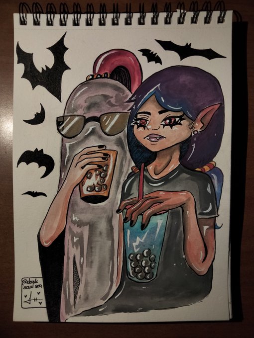 Fondo de pantalla para Halloween, podeis usarlo si quereis ☺️🌠❤️ (Pdt: el lunes subi mas dibus, promesita) ✨🦇 #art #artist #draw #drawing #drawtober #ilustracion #OctobreRose2021 #octoberchallenge #Halloween #Inktober