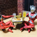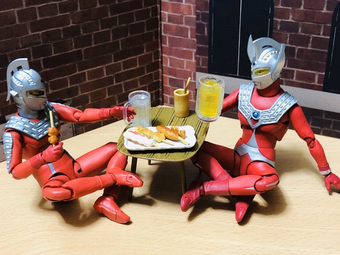 お互いの息子の自慢やら愚痴やら言い合うパパトラマンズ。 #フィギュアーツ #ウルトラマンタロウ #ウルトラセブン #ぷちサンプルシリーズ #オモ写