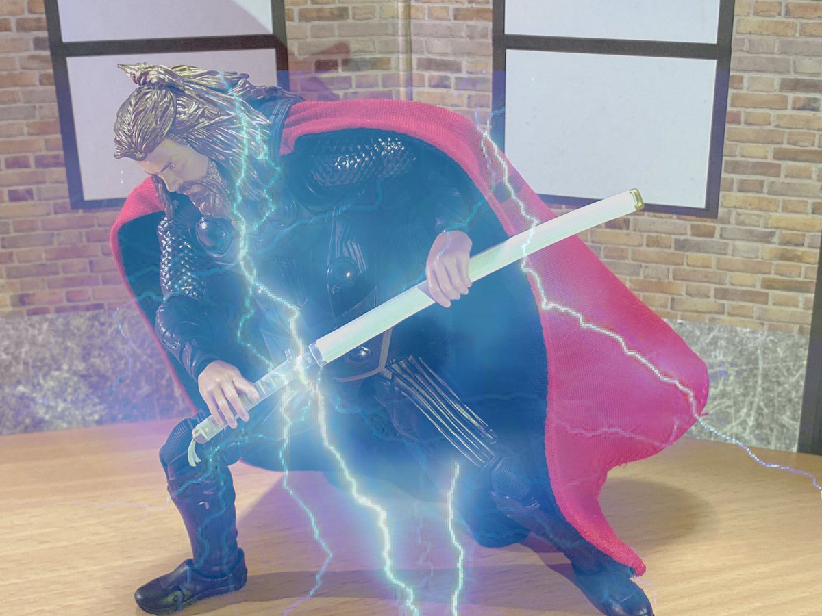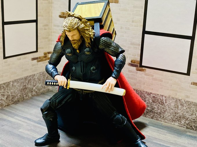 というわけで、Marvelが誇る「雷さま」に全集中してもらいました。 雷の呼吸 壱の型 霹靂一閃‼︎ #オモ写 #雑な合成 #日輪刀コレクション #フィギュアーツ