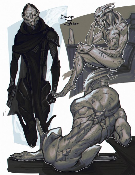 #masseffect Saren Arterius before meeting the Reaper without any cybernetic implants. I studied turian anatomy, and came up with a back view because I did not find concepts for the back.