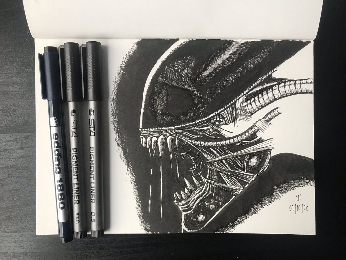 31 days of horror inspired sketches for #inktober2020 #day2 .....The greatest sci-fi horror movie monster of all time #xenomorph #alien #hrgiger #ridleyscott